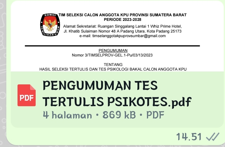 Padang, --- Ganass.. Seleksi KPU Sumbar, Tinsel umumkan 20 nama Calon Anggota KPU periode 2023-2028, Selasa 14/3-2023.Kenapa tidak? tiga nama calon incumbent pada pengumuman Timsel KPU Sumbar yang ditanda tangan Ketua Prof Asrinaldi dan Sekretaris Timsel Dr Otong Rosadi itu, Yanuk, Yuzalmon dan Iswaryani terjungkal.