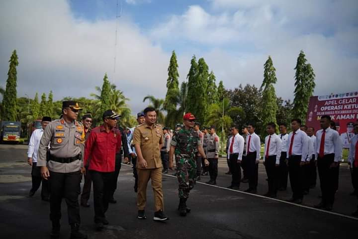 Dharmasraya - Apel gelar pasukan Operasi Ketupat 2023 dalam rangka pengamanan Idul Fitri 1444 H/ 2023 M, dengan tema "Mudik Aman Berkesan", dilaksanakan serentak di seluruh Indonesia Senin 17/4-2023.Di Kabupaten Dharmasraya, apel gelar pasukan digelar di halaman Kantor Bupati. Bertindak sebagai pembina apel Kapolres Dharmasraya, AKBP Nurhadiansyah. Apel Gelar Pasuka Operasi Ketupat 2023 disaksikan Bupati Dharmasraya, Sutan Riska Tuanku Kerajaan, Ketua DPRD, Pariyanto, Dandim , Letkol Endik Hendra Sandi, Kajari Dharmasraya, Dodik Hermawan, Kalapas Dharmasraya, Budi Setyo Prabowo,