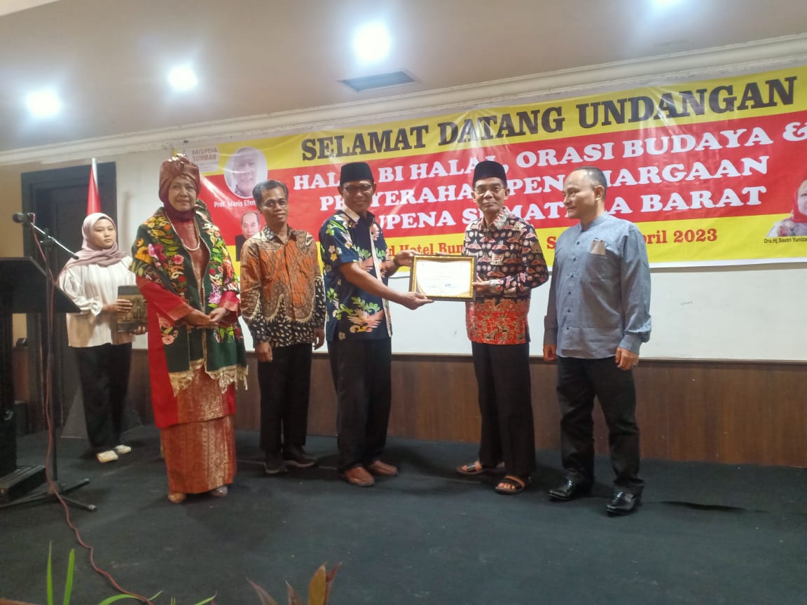 Padang, --Halal bi halal (HBH), orasi budaya, dan penyerahan penghargaan yang diselenggerakan DPD Satupena Sumatera Barat, Sabtu (29/4/2023) di Hotel Kyriad Bumi Minang, Padang sukses dan tentunya kian menumbuhkan tali silaturahmi di antara keluarga besar Satupena Sumbar.Ketua DPD Satupena Sumbar Sastri Bakry bersama Sekretaris Armaidi Tanjung menyebutkan, halal bi halal ini adalah bagian dari upaya merajut silaturahmi.