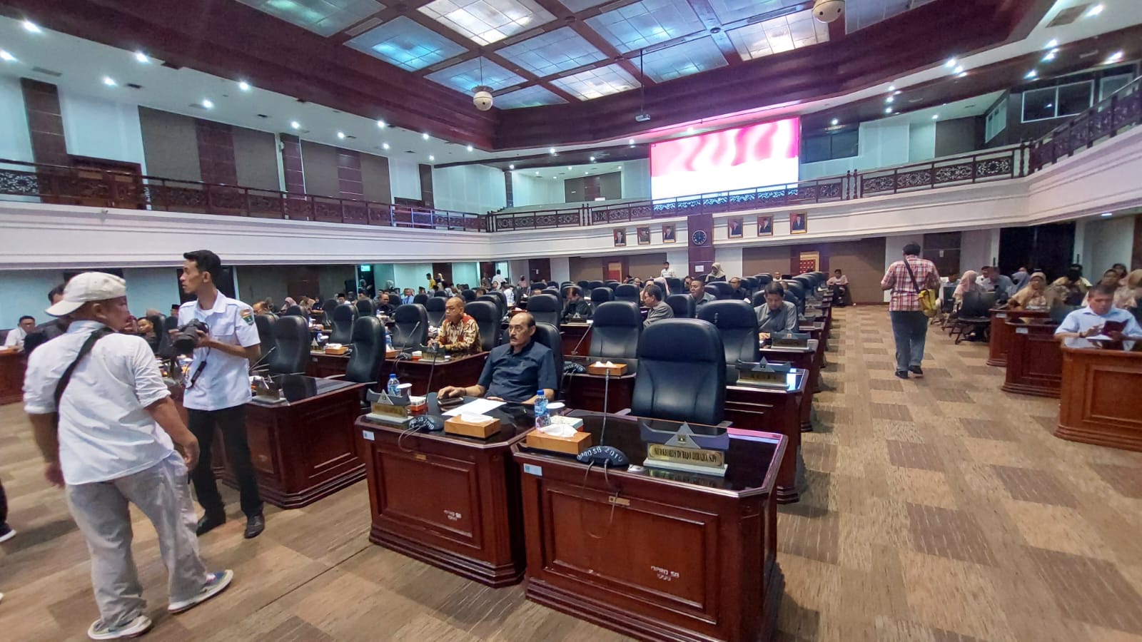 Padang - DPRD bersama Pemprov Sumbar menggelar rapat paripurna dengan agenda Penetapan Rekomendasi DPRD Sumbar Terhadap Laporan Keterangan Pertanggungjawaban (LKPJ) Kepala Daera Tahun 2022, Jum'at (12/5/2023) diruang sidang utama kantor DPRD Sumbar.Rapat paripurna itu dipimpin wakil ketua DPRD Sumbar, Irsyad Safar didampingi Suwirpen Suib dan Indra Datuak Rajo Lelo. Sementara dari pihak Pemrov dihadiri langsung Gubernur Sumbar Mahyeldi Ansharullah.