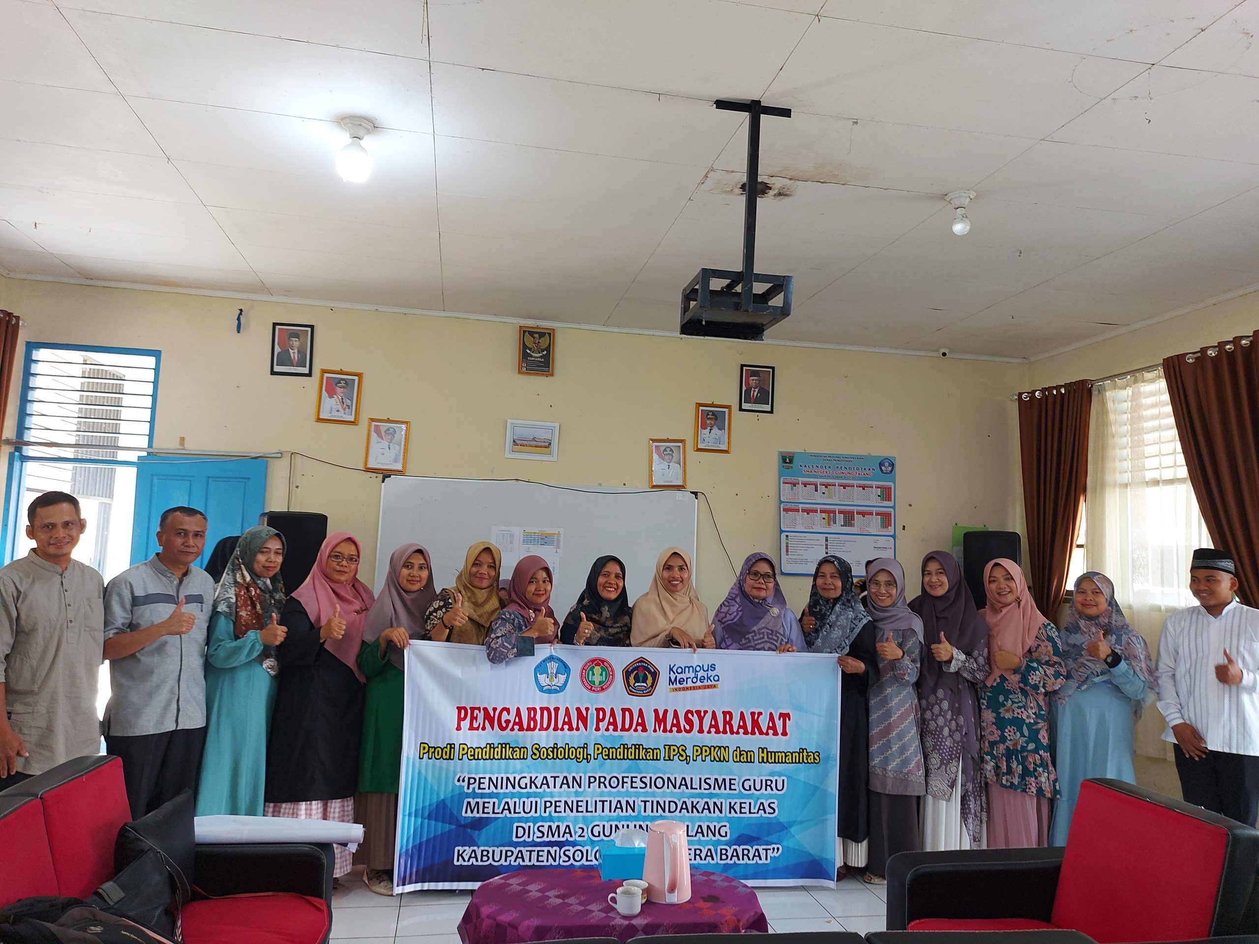 Pada dasarnya guru merupakan seorang yang profesionalisme dalam bidangnya. Kegiatan yang dilakukan oleh Dosen dari Prodi Pendidikan Ilmu Pengetahuan Sosial (IPS) yakni Sri Rahayu, M.Pd dan Dra. Harisnawati, M.Pd serta Dosen dari Prodi Sosiologi Yanti Sri Wahyuni, M.Pd. kegiatan yang dilakukan disekolah tersebut diterima dengan baik oleh Despryhati Ningsih, S.Pd, MM sebagai kepala sekolah SMAN 2 Gunung Talang.Salah satu keberhasilan guru dalam mengajar siswanya dapat dilihat melalui nilai-nilai yang dimilikinya. Semakin banyak siswa yang dapat melampaui KKM, maka semakin besar pula tingkat keberhasilan guru dalam mengajar.