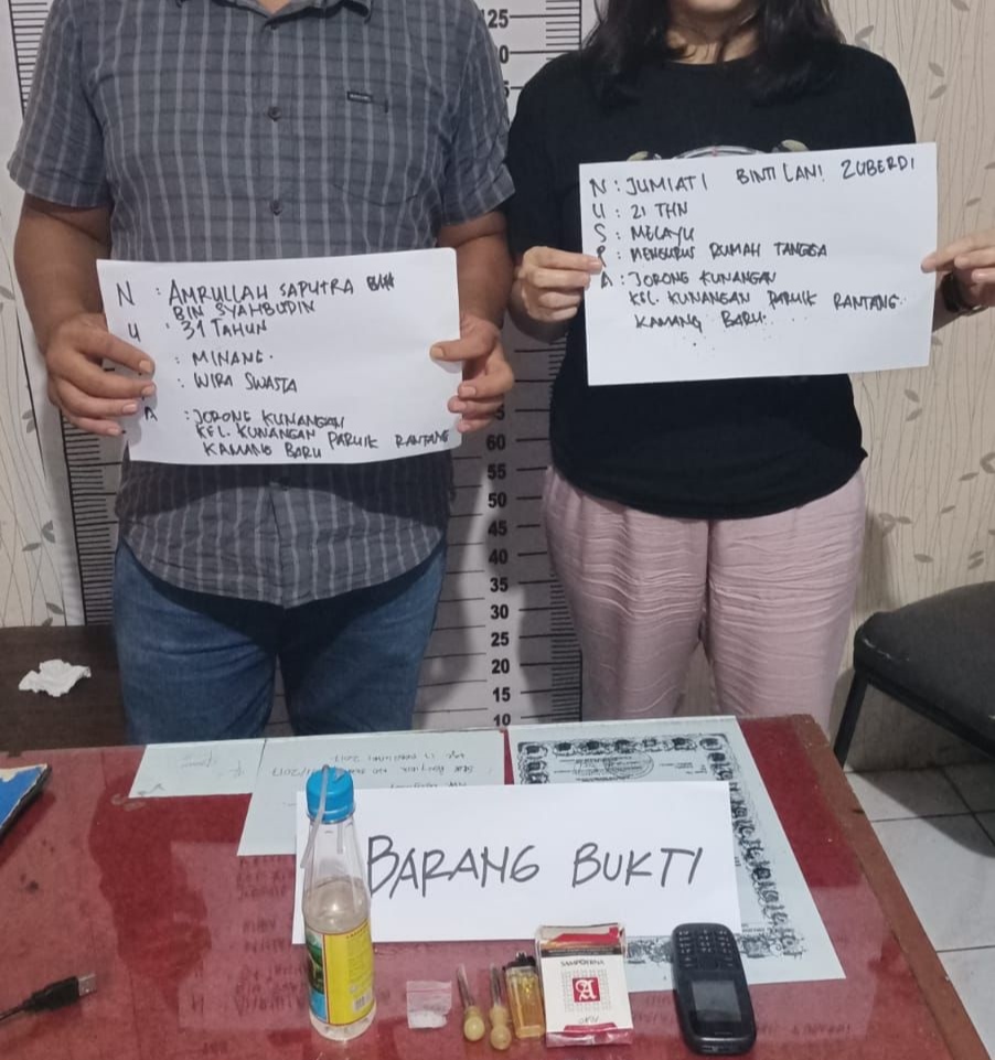 Kapolres Sijunjung AKBP Andre Anas melalui Kasat Narkoba Polres Sijunjung Iptu Awal Rama didampingi Kasi Humas Polres Sijunjung AKP Taufik via membenarkan jajarannya telah mengaman pasangan suami istri atas dugaan tindak pidana penyalahgunaan narkotika jenis sabu, yang berinisial A S umur 31 tahun dan istrinya JI umur 21 tahun, tersangka AS kata Iptu Awal Rama, menjabat Ketua KNPI Sijunjung."Jajaran kami menangkap oknum pimpinan KNPI bersama istri Kamis malam, penangkapan kedua pelaku ini berkat adanya informasi masyarakat, tentang adanya seorang yang diduga melakukan tindak pidana penyalahgunaan narkotika jenis sabu,"ujar Iptu Awal Rama via chat whatsapp Sabtu 5/6-2023.