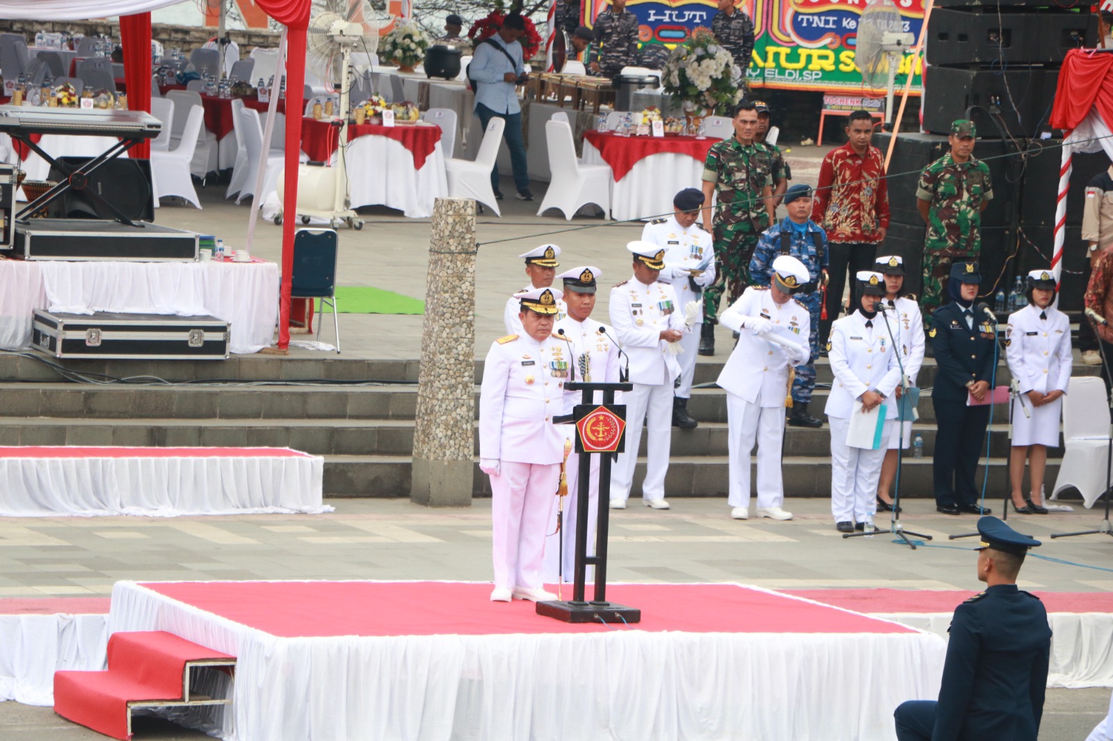 Dalam sambutan tertulis Panglima TNI Laksamana TNI H. Yudo Margono, S.E., M.M., C.S.F.A.., yang dibacakan Danlantamal II Padang yang berisi, TNI telah hadir dan menjalankan amanah sebagai garda terdepan sekaligus benteng terakhir NKRI selama 78 tahun.Peringatan HUT ke-78 TNI pada tahun 2023 ini, mengusung tema “TNI PATRIOT NKRI, PENGAWAL DEMOKRASI UNTUK INDONESIA MAJU”, yang mengandung makna, TNI berkomitmen untuk bersinergi dengan seluruh komponen bangsa lainnya dalam mengawal demokrasi untuk mewujudkan Indonesia yang berdaulat, mandiri, maju dan sejahtera.