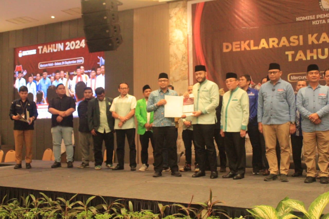 Padang--- Cawako dan cawaako Padang Fadly Amran- Maigus Nasir hadiri Deklarasi Pilkada Damai digelar KPU di Hotel Mercure Padang.Fadly Amran kepada wartawan mengapresiasi kegiatan deklarasi damai ini.