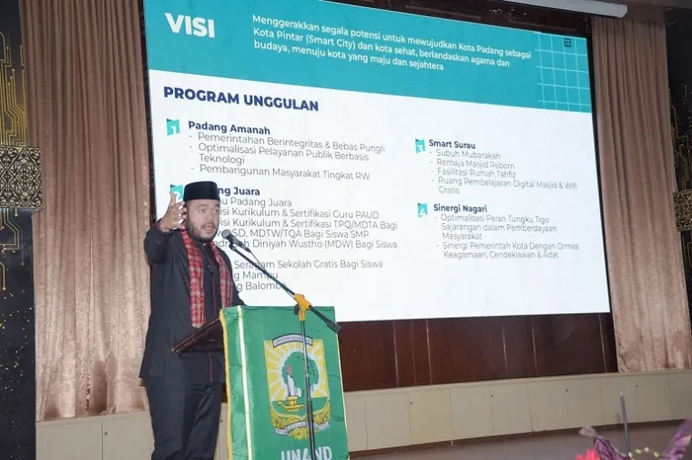 "Kota Padang memiliki kekayaan sejarah dan budaya yang luar biasa. Mulai dari peninggalan bunker Jepang, cagar budaya, etnis, hingga tradisi yang masih hidup dalam masyarakat. Semua ini harus kita lestarikan dan manfaatkan untuk kemajuan pembangunan daerah," ujar Fadly Amran di hadapan ratusan mahasiswa dan akademisi Unand.