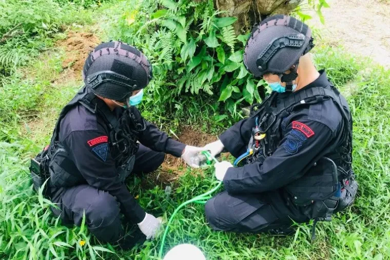 Lebih lanjut, setelah dinyatakan aman dilakukan penyisiran dan pencarian pecahan dan serpihan bom Militer jenis motir yang telah dilaksanakan pendisposalan dan pemusnahan untuk di amankan ke Mako Polsek Ranah Pesisir.