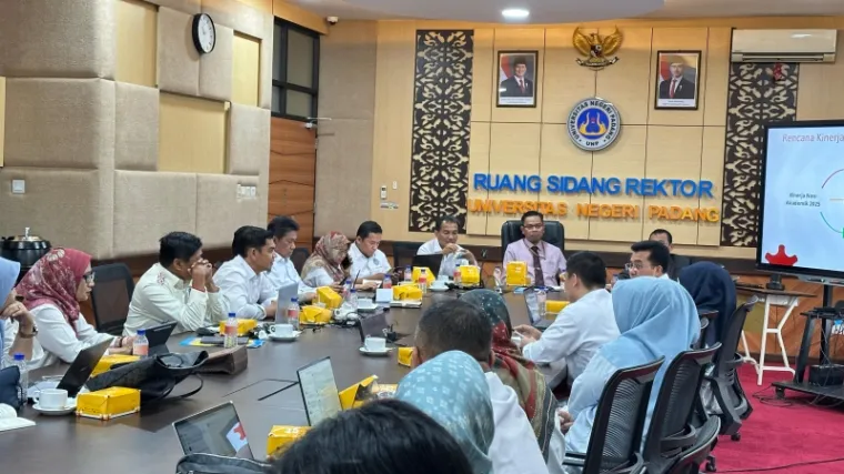 Padang--- Memasuki tahun Anggaran 2025, Universitas Negeri Padang melakukan pembahasan kembali anggaran program kerja (Proker) dan Anggaran pada semua unsur di bawah Rektor, yang sebelumnya sudah dipresentasikan di depan sivitas akademika November 2024 yang lalu. Kegiatan ini dilaksanakan secara marathon mulai Senin 6-9 Januari 2025 di Ruang Sidang Rektor UNP Kampus Air Tawar Padang, setiap harinya dilakukan pembahasan Proker pada tiga Fakultas dan Sekolah di lingkungan UNP.