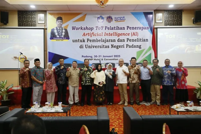 Padang - Universitas Negeri Padang (UNP) menggelar Workshop Training of Trainers (ToT) bertajuk "Pelatihan Penerapan Artificial Intelligence (AI) untuk Pembelajaran dan Penelitian" pada 30-31 Januari 2025 di UNP Hotel & Convention. Kegiatan ini bertujuan membekali dosen dan peneliti dengan pemahaman serta keterampilan dalam menerapkan teknologi AI guna meningkatkan kualitas pembelajaran dan penelitian.