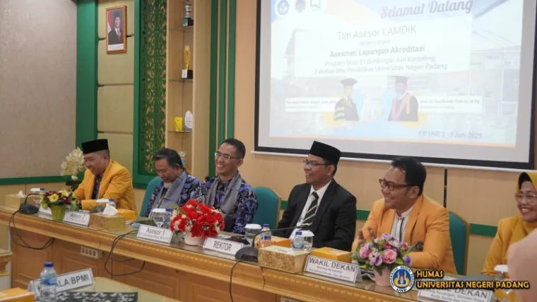 Padang — Fakultas Ilmu Pendidikan (FIP) Universitas Negeri Padang (UNP) menyelenggarakan Asesmen Lapangan dalam rangka akreditasi Program Studi Sarjana (S1) Bimbingan dan Konseling pada tanggal 2–3 Juni 2025. Kegiatan ini bertempat di Ruang Sidang Lantai 2 FIP UNP dan dihadiri oleh pimpinan fakultas, pengelola program studi, serta asesor dari dua perguruan tinggi ternama di Indonesia.