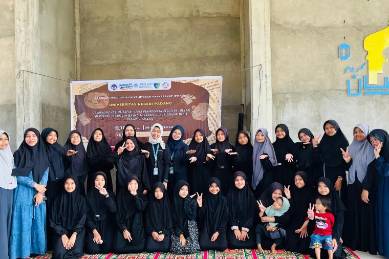 Padang, - Universitas Negeri Padang (UNP) melalui tim Program Multidisiplin Kemitraan Masyarakat (PMKM) mengadakan sosialisasi bertajuk “Journaling For Wellness: Upaya Peningkatan Resiliensi Mental di Pondok Pesantren Ma’had Al Abqary Silaut dengan Media Berbasis Taskade”, Sabtu (16/8/2025).
