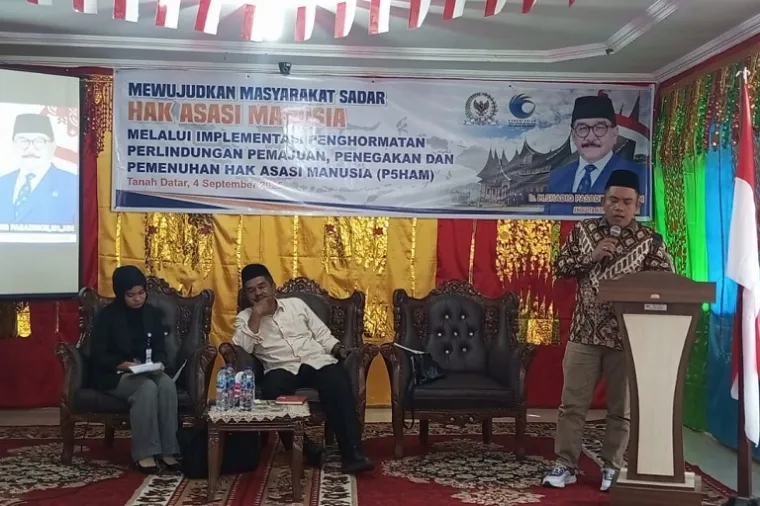 Batusangkar, - Anggota DPR RI Shadiq Pasadigoe menggelar kegiatan sosialisasi meningkatkan kesadaran masyarakat terhadap pentingnya Hak Asasi Manusia (HAM) pada Kamis (04/9/2025)