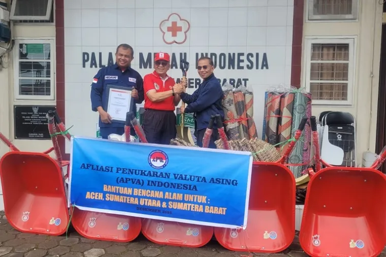 Setelah menyerahkan Paket Sembako, Pengurus APVA Sumbar Pada Senin (8/12/2025) juga menyalurkan sejumlah peralatan seperti Gerobak, Cangkul, Sekop, Keranjang, tikar Kasur, selimut dan pukuhan dus air Mineras ke Kantor Palang Merah Indonesia (PMI) Sumbar.