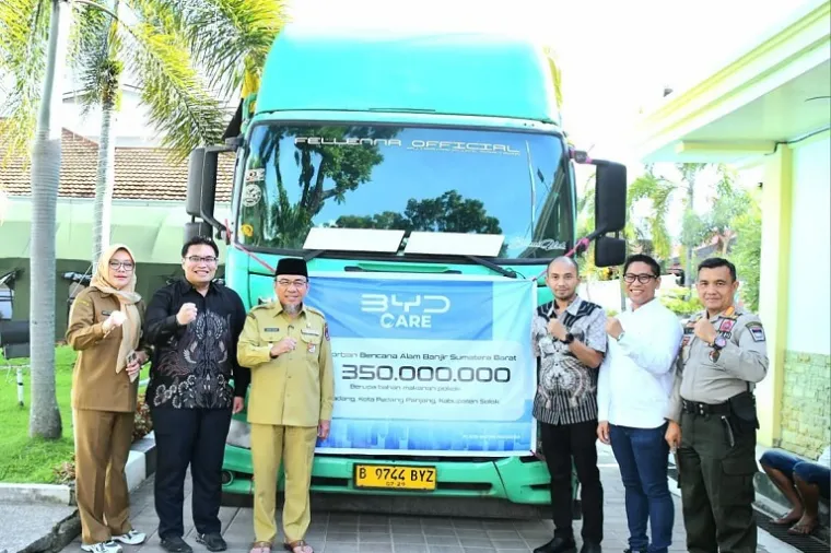 Bantuan itu diserahkan oleh Direktur PT Bipo Teknologi Otomotif/BYD Padang, Andi Cahyadi, kepada Wakil Wali Kota Padang, Maigus Nasir, di Posko Tanggap Darurat Bencana Kota Padang.