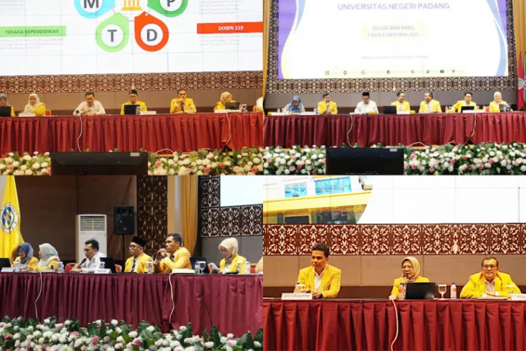 Padang - Universitas Negeri Padang (UNP) menggelar rapat koordinasi program kerja dan anggaran tahun 2026 Selasa - Rabu (7-8 Oktober 2025). Kegiatan yang digelar di Auditorium UNP itu dihadiri seluruh pimpinan dan unit kerja di Lingkungan UNP.