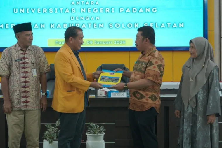 Solok-- Pemerintah Kabupaten Solok Selatan secara resmi menerima mahasiswa Kuliah Kerja Nyata (KKN) dari Universitas Negeri Padang dalam kegiatan serah terima yang digelar di Kantor Bupati Solok Selatan, Jum’at (9/1/2026). Kegiatan ini menandai dimulainya pelaksanaan KKN Reguler UNP di wilayah tersebut, yang untuk pertama kalinya dilaksanakan di Kabupaten Solok Selatan.