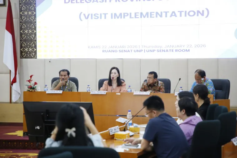 Padang – Universitas Negeri Padang (UNP), salah satu perguruan tinggi terbesar dan tertua di Sumatera, terus berupaya meningkatkan daya saing global. Salah satu upayanya diwujudkan dengan menerima kunjungan delegasi dari sejumlah perguruan tinggi di Provinsi Guangdong, Republik Rakyat Tiongkok, di Ruang Sidang Senat Gedung Rektorat dan Research Center Lantai 4, Kamis (22/1).