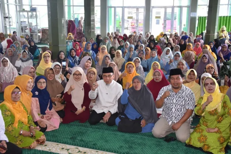 Padang - Wakil Wali Kota Padang Maigus Nasir memberikan tausiah dalam kegiatan Halal Bihalal Idul Fitri 1447 H yang diselenggarakan Aisyiyah Pauh IX, di Masjid Raya Kebenaran, Kelurahan Anduring, Kecamatan Kuranji, Jumat (17/4/2026), yang dihadiri pengurus dan ratusan anggota Aisyiyah, tokoh masyarakat, serta jajaran Pemerintah Kota Padang.