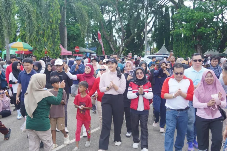 Sejak sebelum pukul 06.00, masyarakat sudah mulai berdatangan dan memenuhi sepanjang ruas jalan yang telah bebas dari kendaraan, menciptakan suasana yang ramai namun tetap tertib dan nyaman.